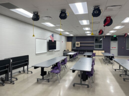 The new high school is designed to foster a student-centered learning environment, featuring 29 classrooms and a student resource office. The building also includes six staircases, with monumental stairwells positioned outside the student dining area and the media center. Additional highlights of the state-of-the-art facility include a performing arts center, a 12,000-square-foot gymnasium, and an 8,000-square-foot auxiliary gym.